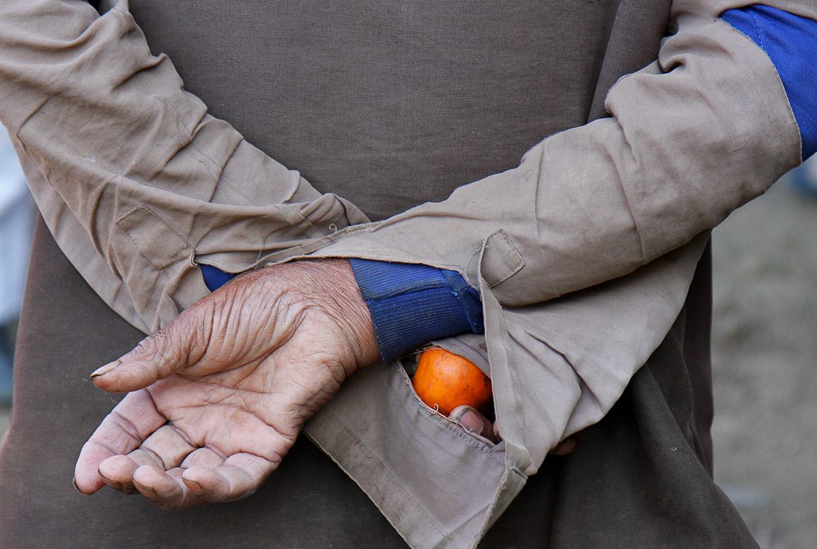 Old man holding fruit (Nepal)