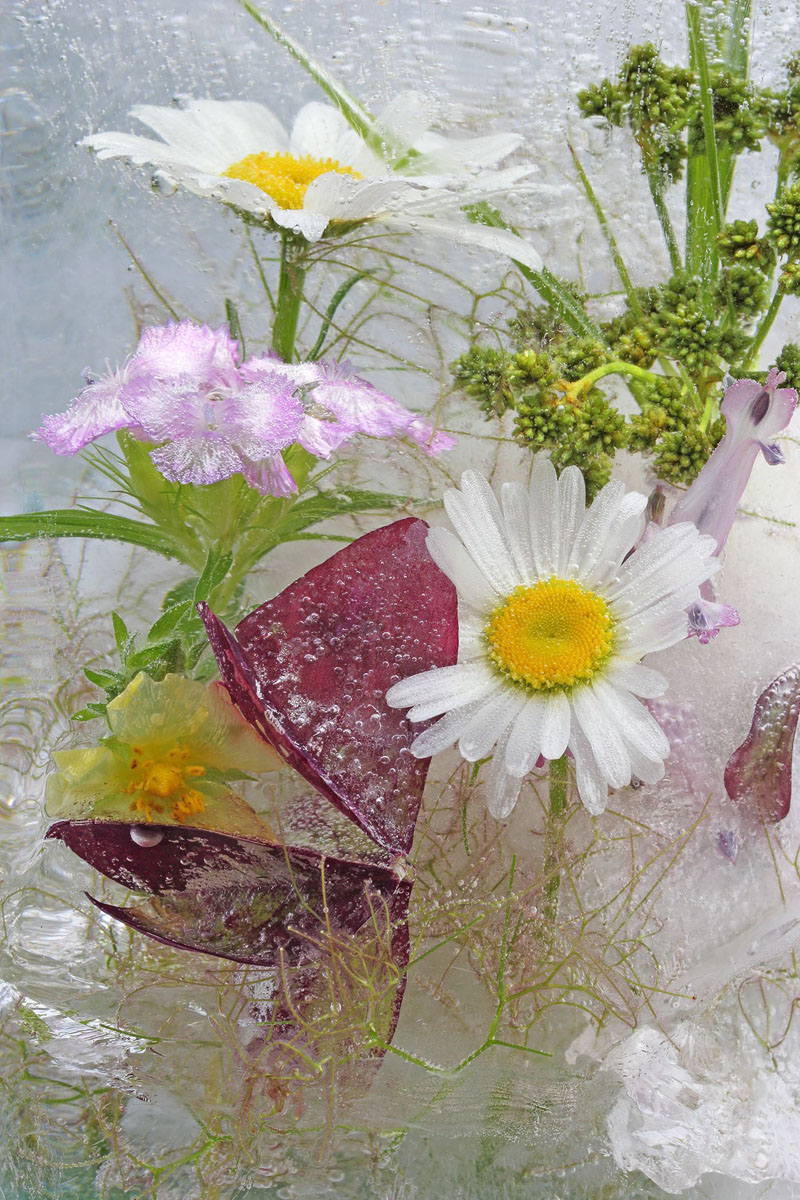 Daisy and Oxalis in Ice