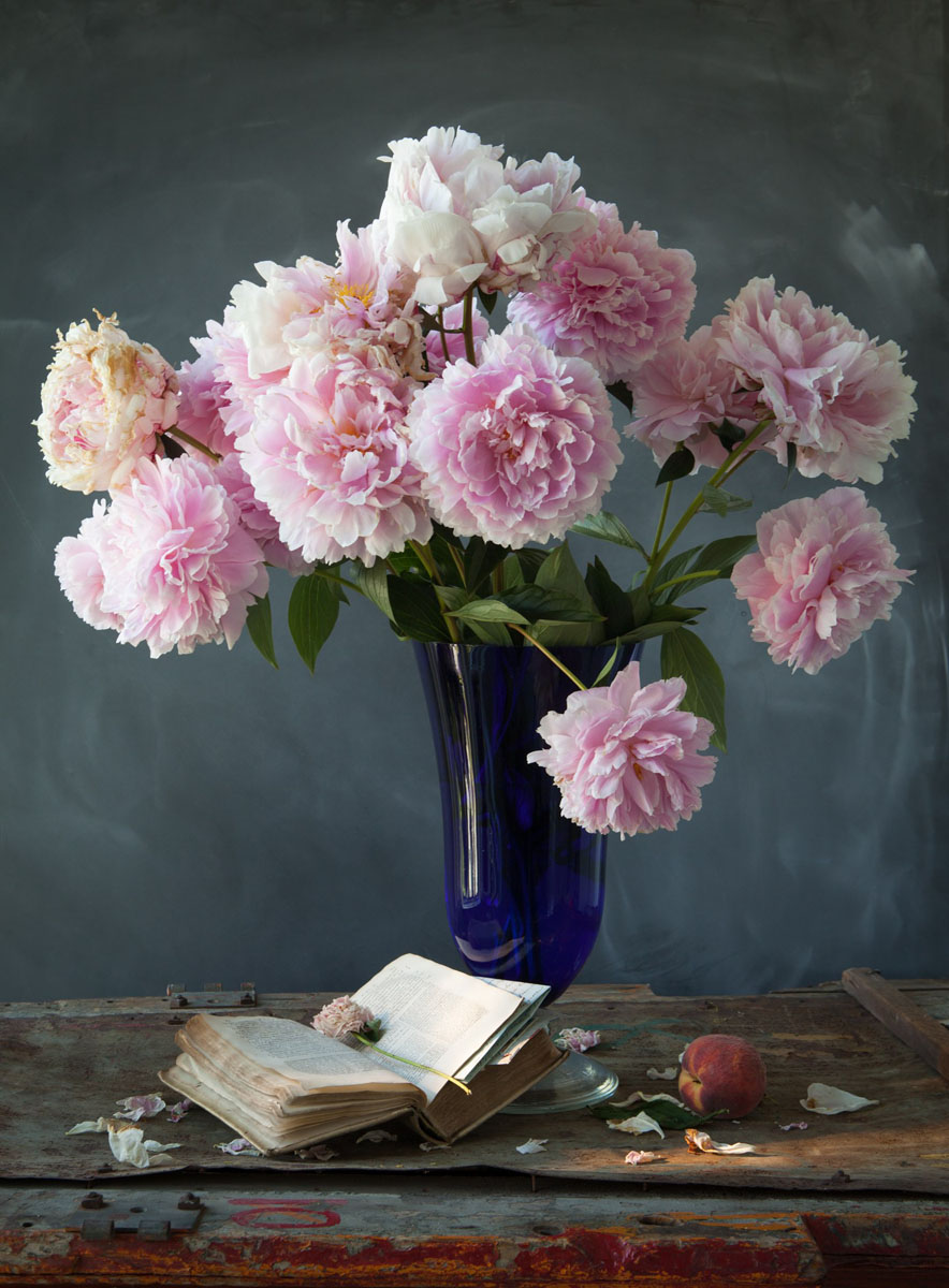 Peonies in Blue Vase