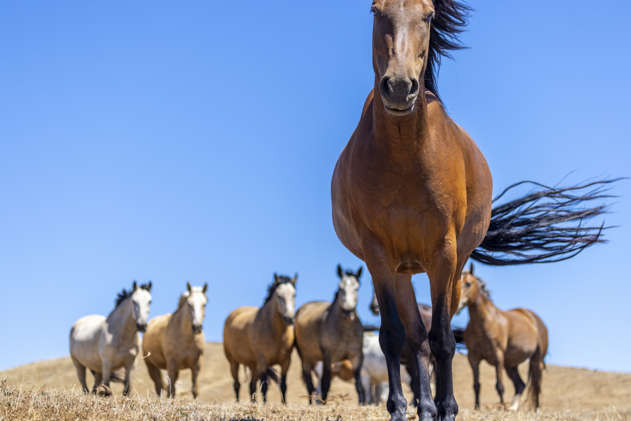 Equine Curiosity: Captivating Gaze of a Horse Herd