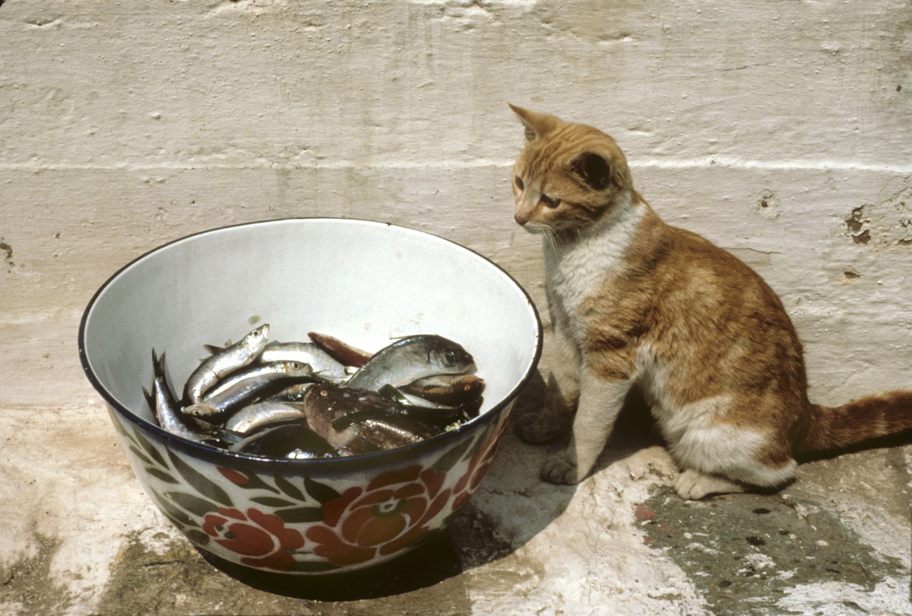 Kanella the Cat Stares at Freshly Caught Fish