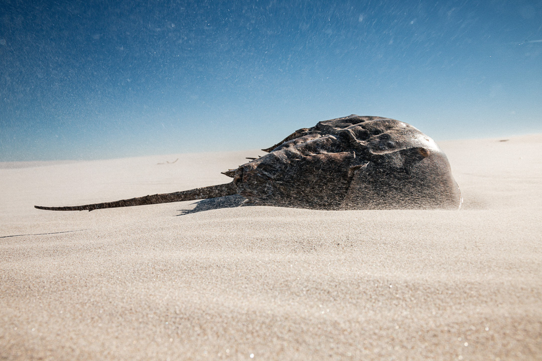 A Horseshoe Crab Shell Stranded on a Beach in a Sandstorm, Cape May