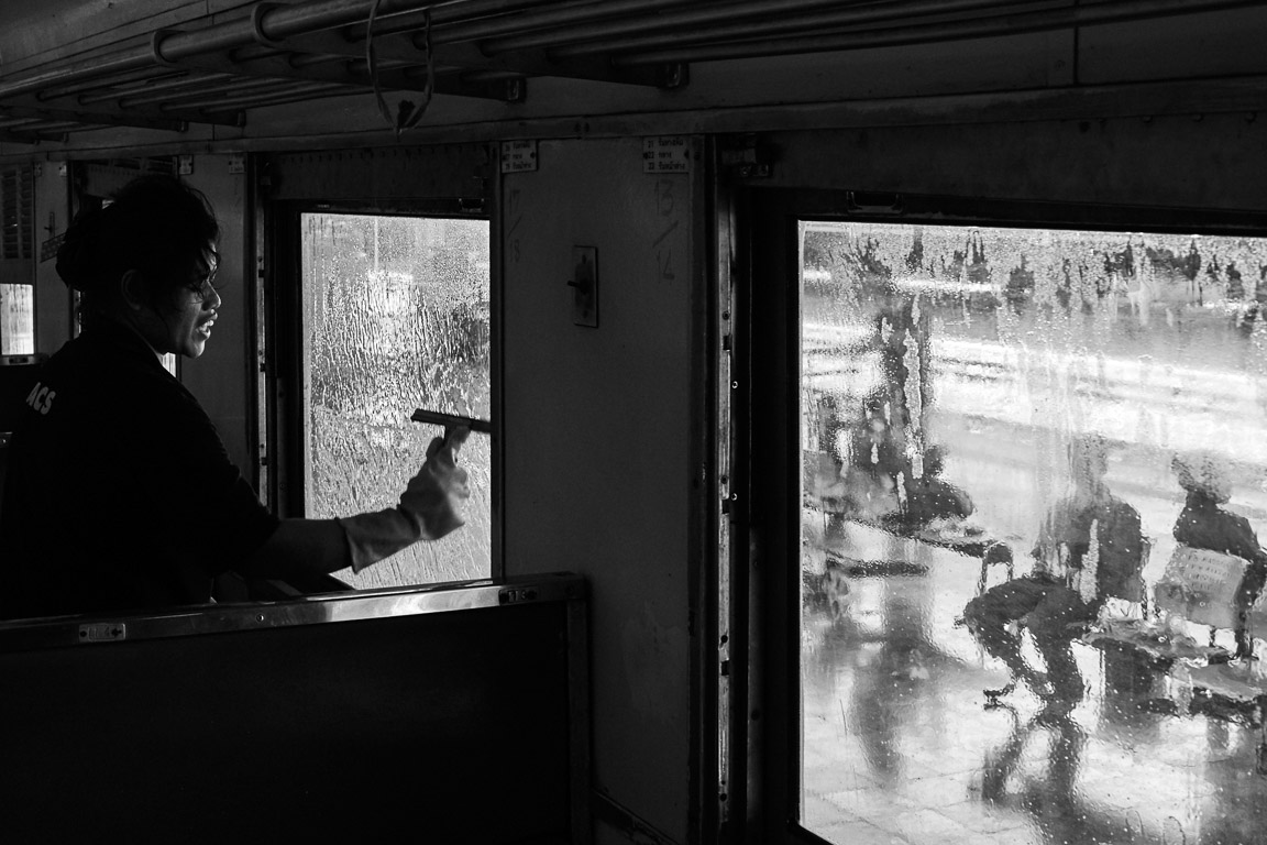 Through the eyes of a cleaning worker, railway station, Bangkok